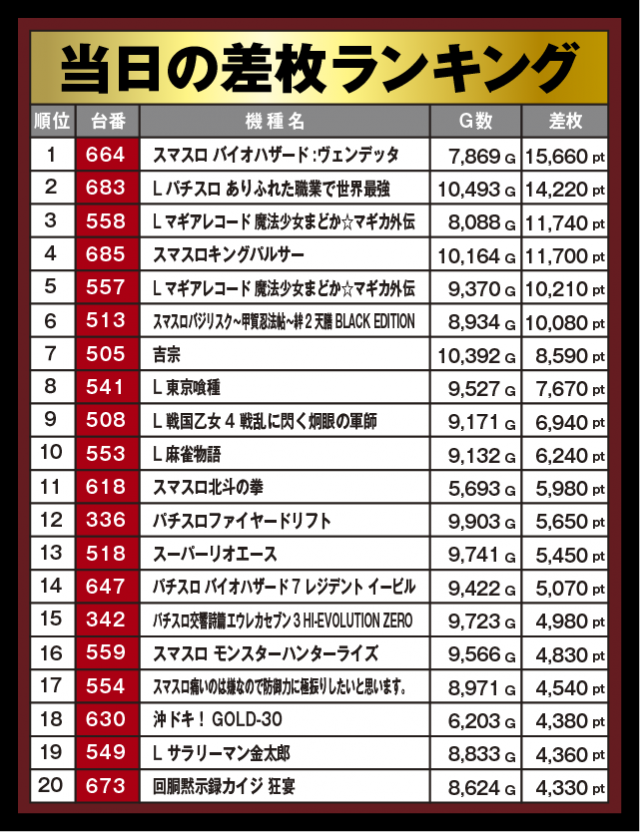 【差枚ランキング&注目機種】SAP野田(千葉県)