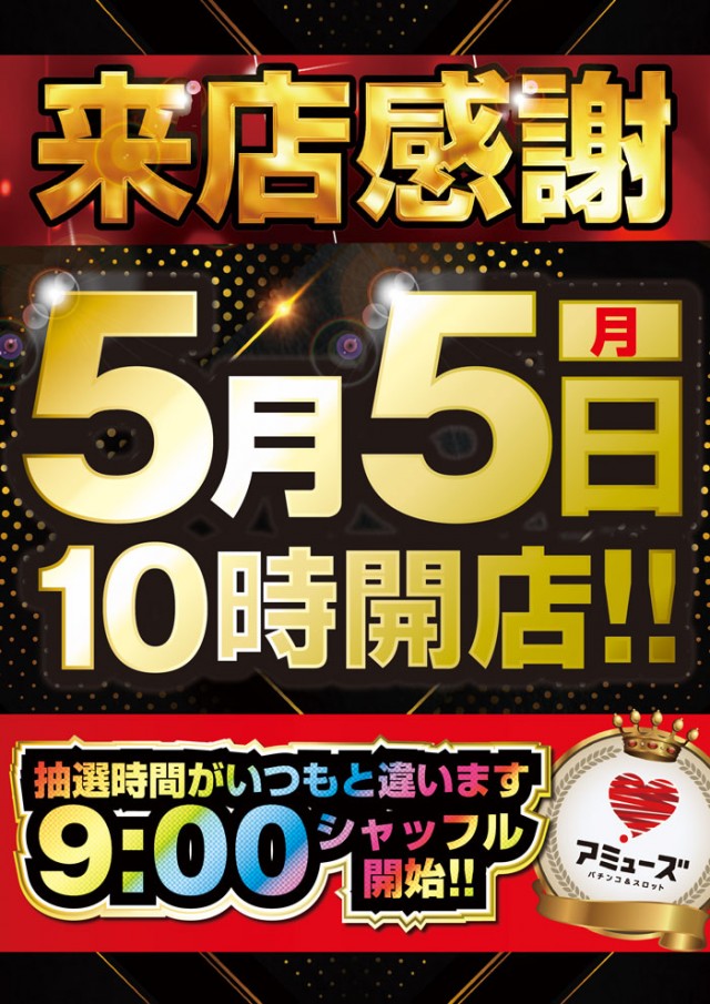 アミューズのGW!!5/4(日)10時開店!!