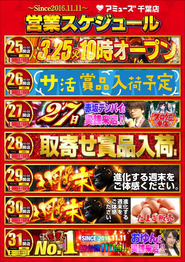 週末もアミューズ千葉店へ!!3月23日(日)10時開店♪
