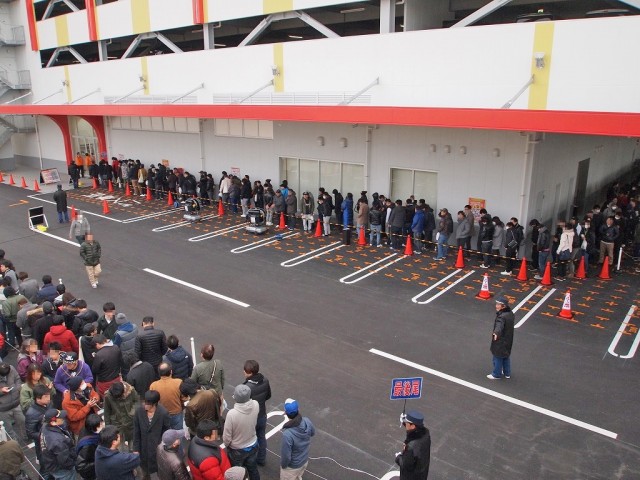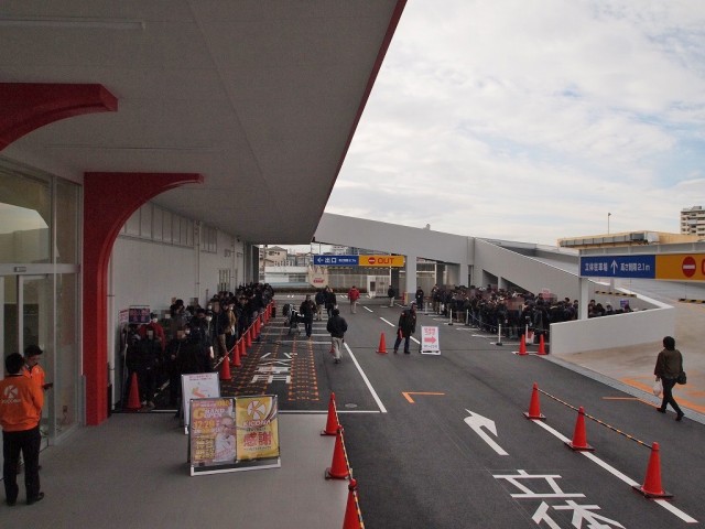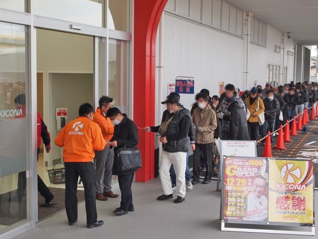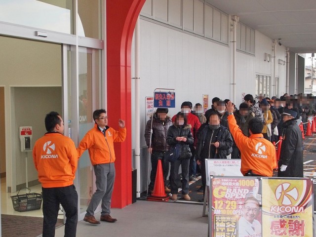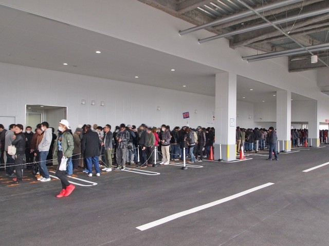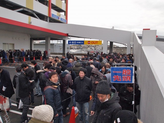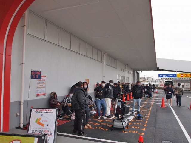 駐車場から店舗の周りには、開店を待つ行列がどんどん増えていく。