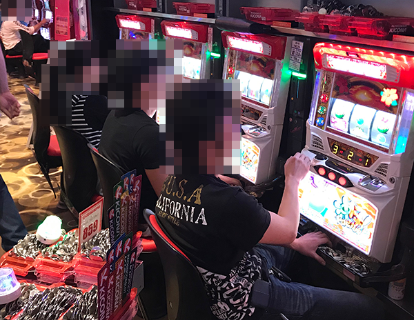 確認時は4台のうち3台が稼働。どのプレイヤーもイキイキとレバーを叩いており、パチスロの醍醐味を存分に味わえていたように思う。
