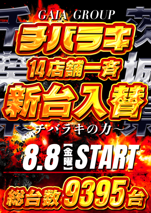 明日8月8日(金)チバラキ合同新台入替♬朝10:00開店