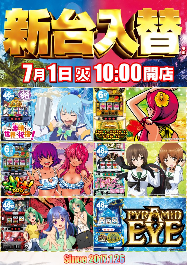 明日7月3日(木)朝10:00開店‼最新台導入済み‼
