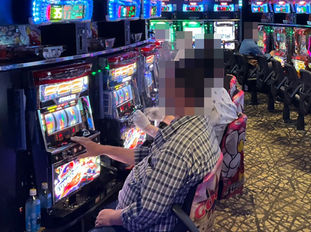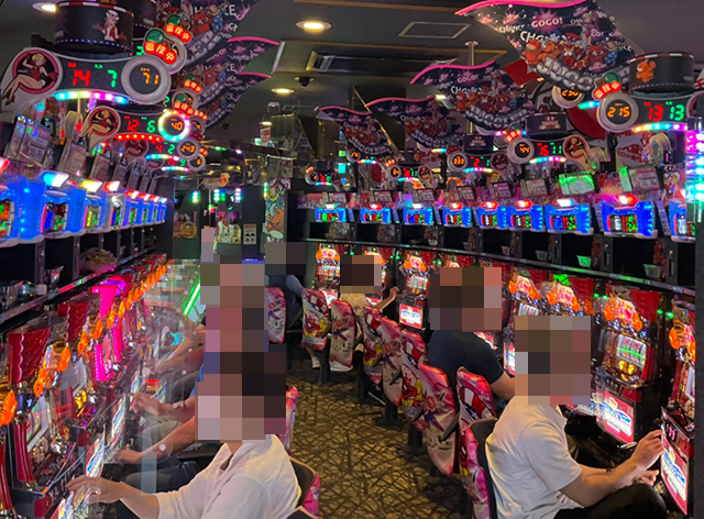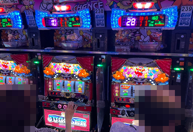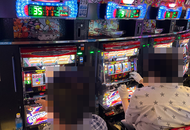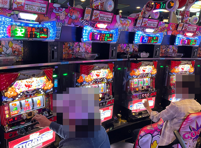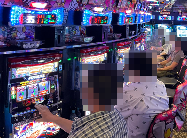 『マイジャグラーV』は26台設置されており、夕方頃に埋まっていたのは約4割。