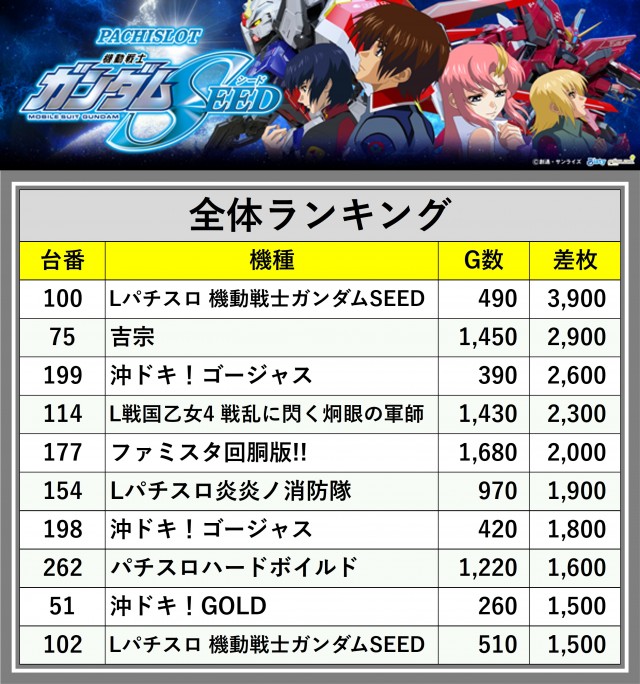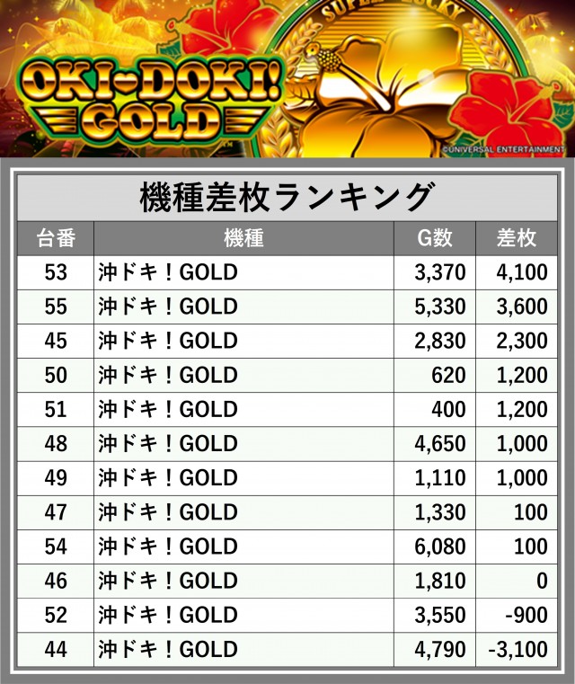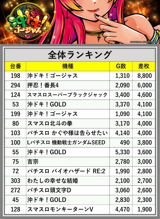 ※差枚数順に掲載しています