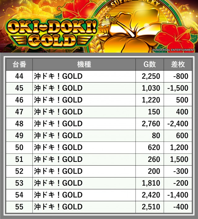 厳選された取材対象機種をはじめ、その他スロット全体から好記録が飛び出した!プレイヤーが楽しんだ1日を下記データにて振り返ってみて欲しい。