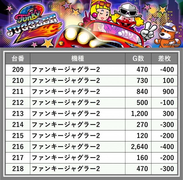 ※台番順に掲載しています