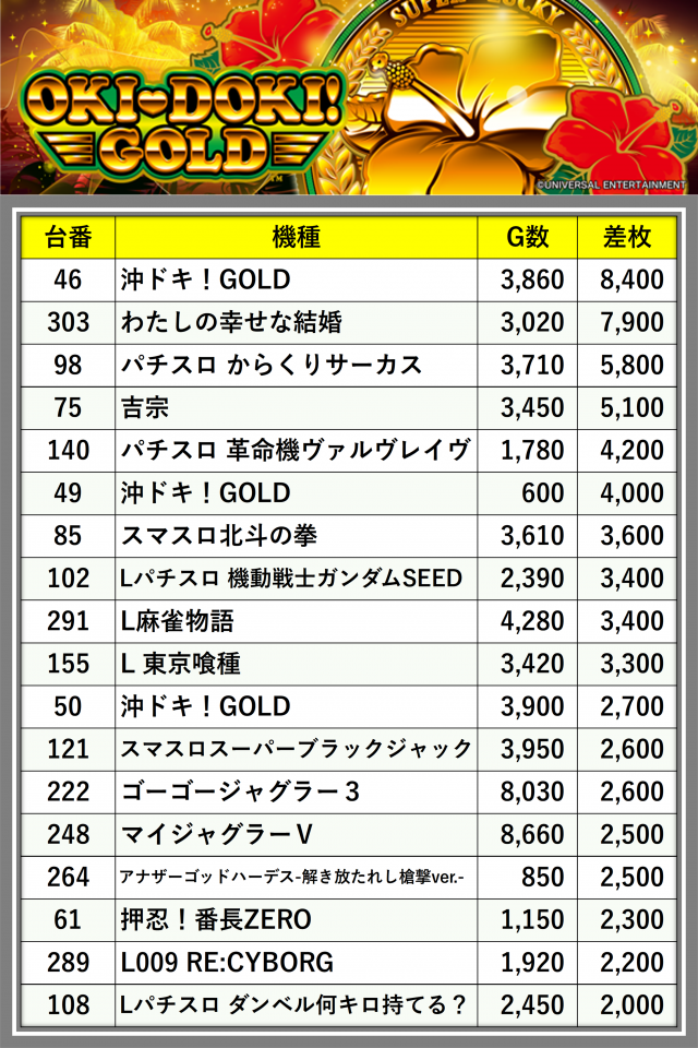 ※記事内の差枚表記はぱちタウン独自調査に基づくものです。ご了承ください。
