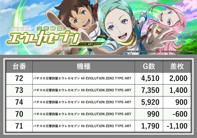 厳選された取材対象機種をはじめ、その他スロット全体から好記録が飛び出した!プレイヤーが楽しんだ1日を下記データにて振り返ってみて欲しい