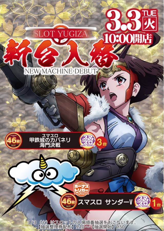 本日🎀新台入替🎀 🔥甲鉄城のカバネリ海門🔥⚡️サンダー⚡️登場❕