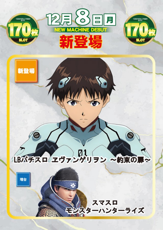 本日🍀170枚スロット🍀に新登場❗シンエヴァ❗増台モンハン❗