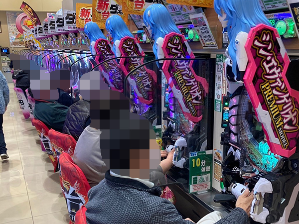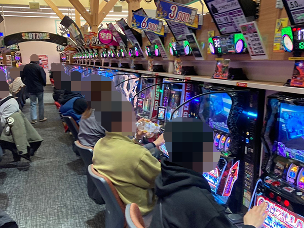 店内では貸し玉料金を問わず様々な機種で、心ゆくまで楽しむプレイヤーの姿が見られた。
