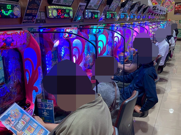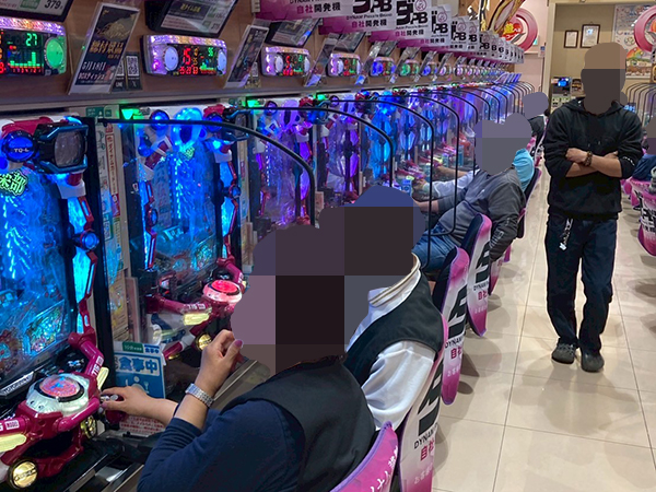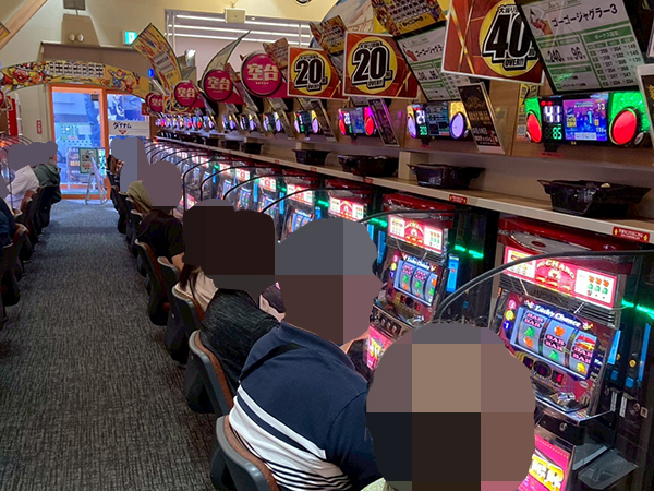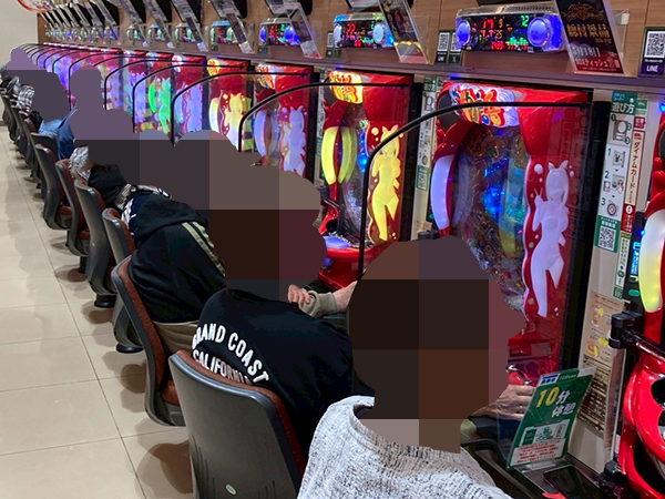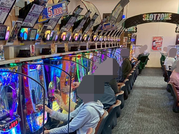 取材時は既に多くのプレイヤーが集結し、パチンコ・パチスロを問わずにぎやかな状況となっていた。