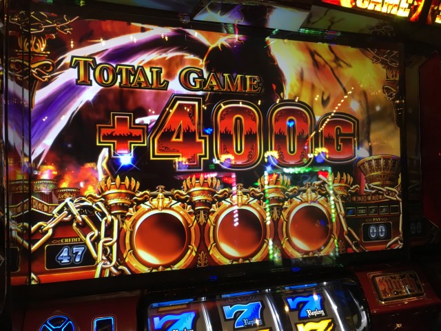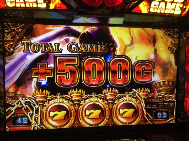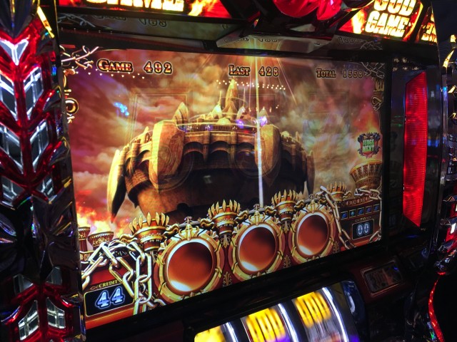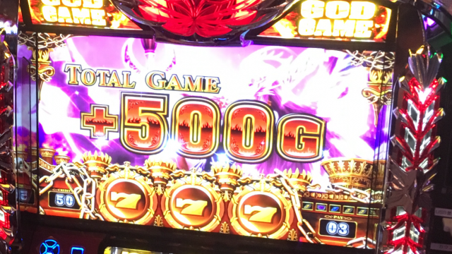 このゴッドゲーム400Gスタート。少々の上乗せ経由の1526枚獲得で終了。