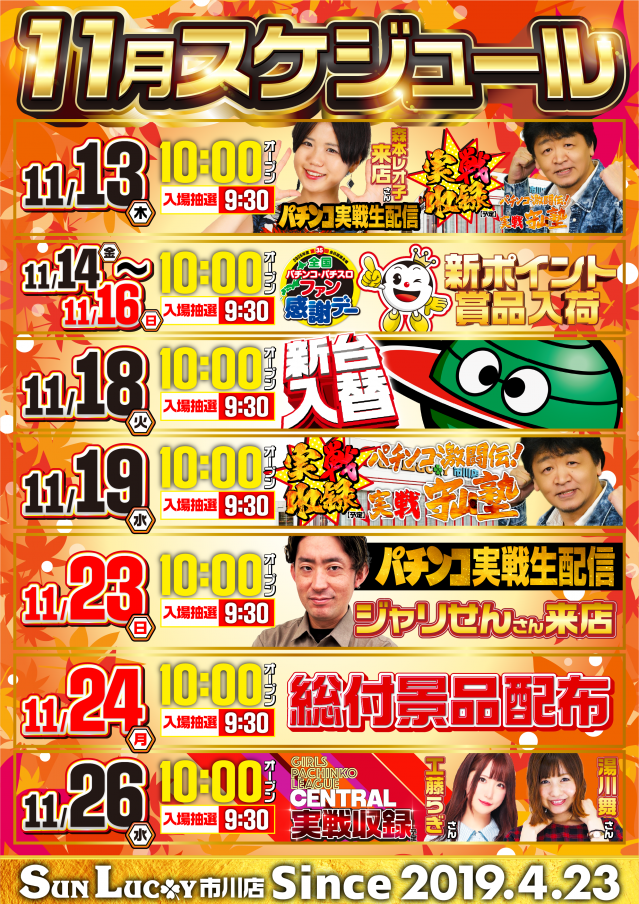 💗本日11月24日(月)💗このあと16時より総付景品配布💗