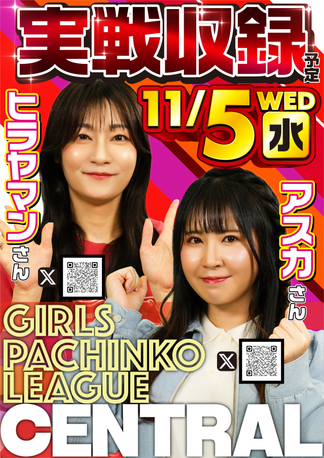 💗明日11月5日(水)💗ガールズパチンコリーグ実戦収録💗