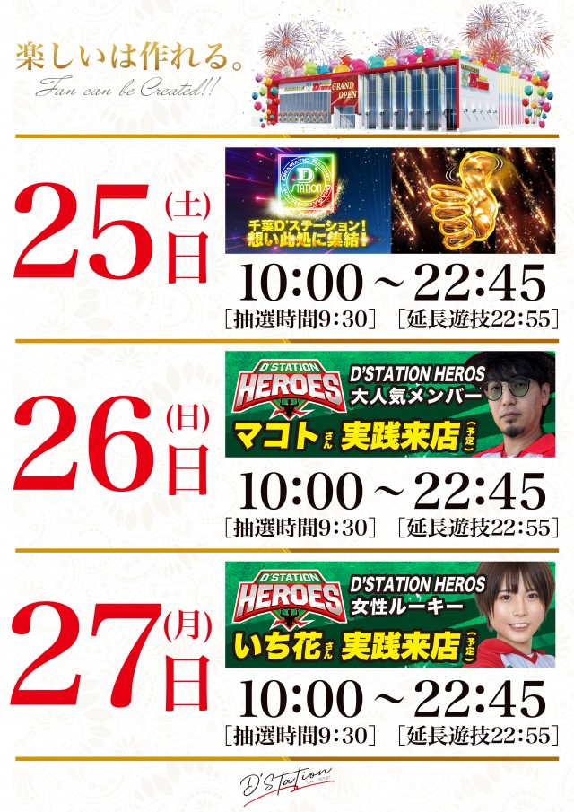 ✨本日✨千葉D’ステーション合同✨新装開店✨午前10時一斉開店✨