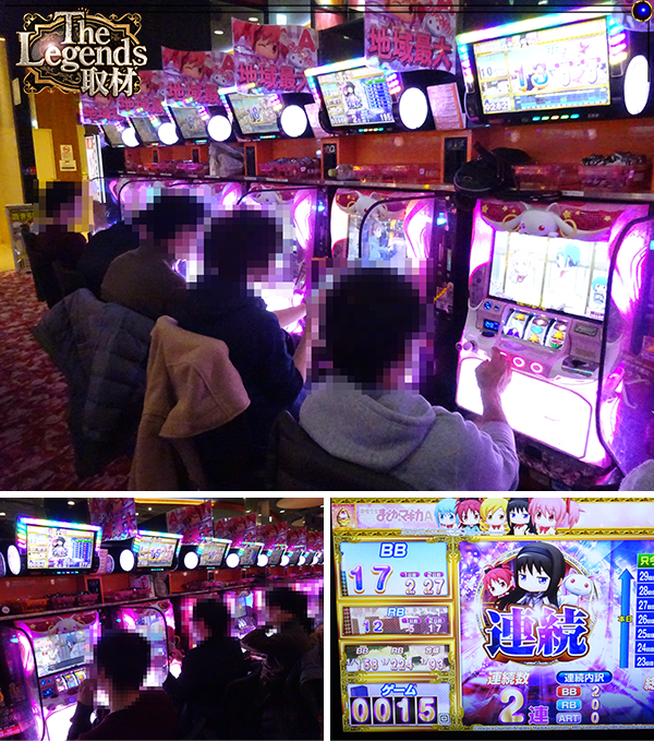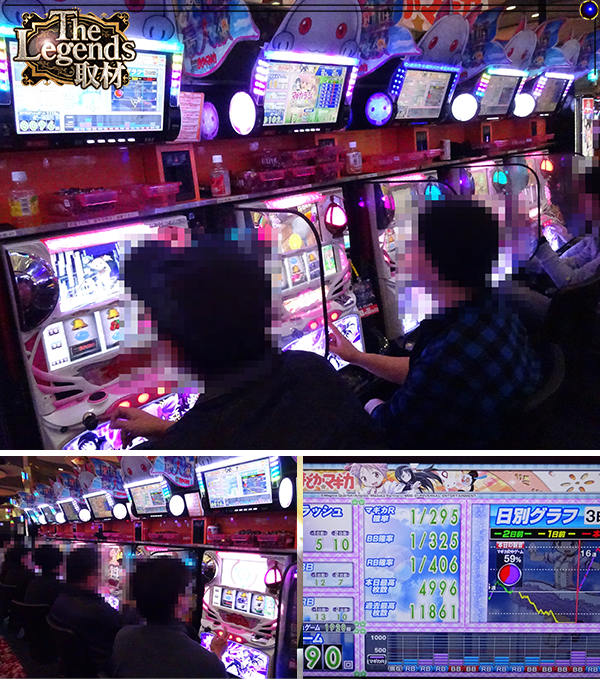「SLOT魔法少女まどか☆マギカ」と「SLOT魔法少女まどか☆マギカA」が支持されており、稼働率は朝イチから90%以上。2機種をあわせた24台中9台が持ち玉での遊技となっていた。