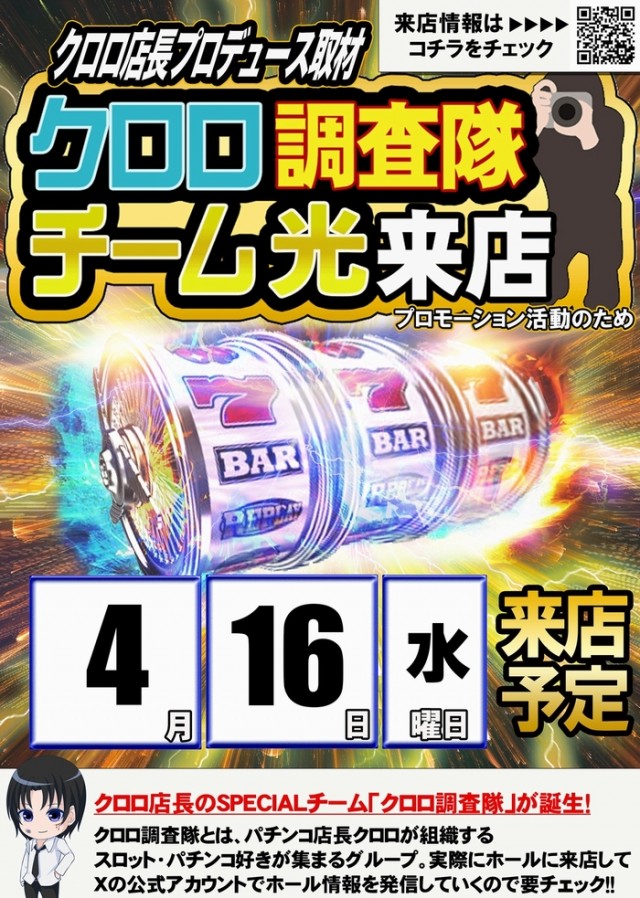 4月16日(水)新台入替!クロロ調査隊チーム光来店!