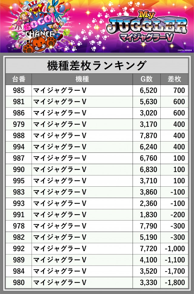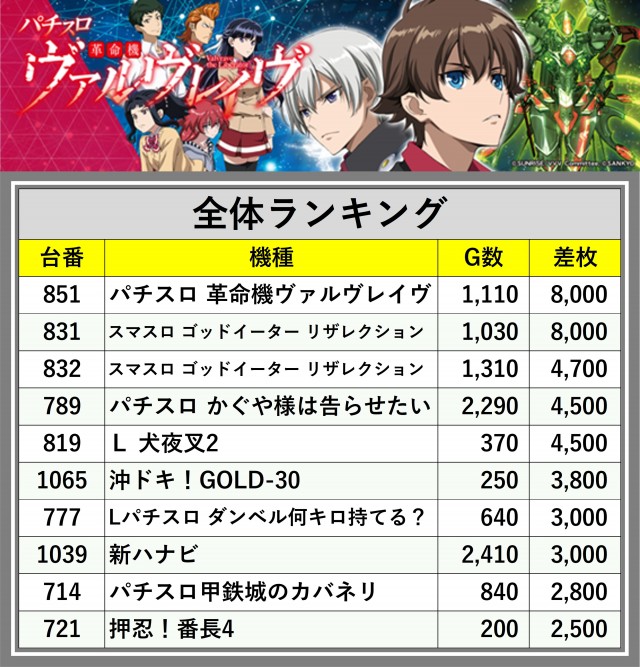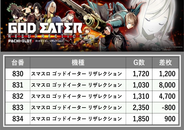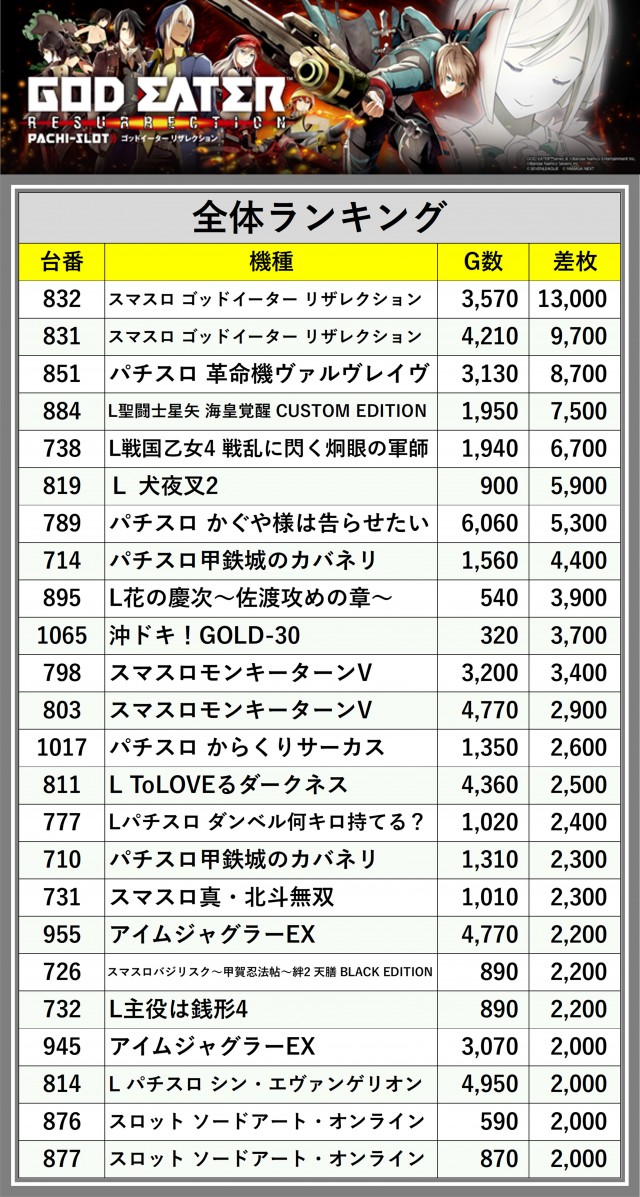 厳選された取材対象機種をはじめ、その他スロット全体から好記録が飛び出した!プレイヤーが楽しんだ1日を下記データにて振り返ってみて欲しい。
