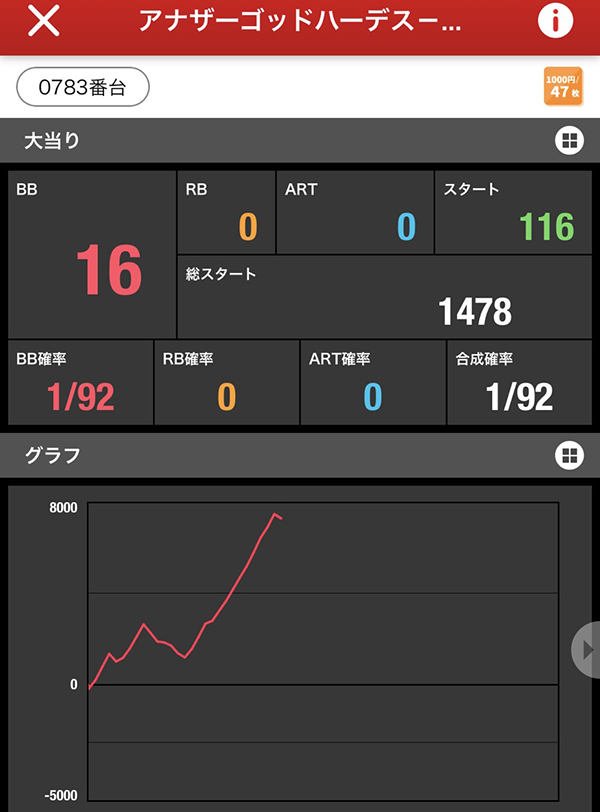 プレイヤーが理想的といえる展開で遊技をおこなえていることは、台のデータにもあらわれているように思えた。