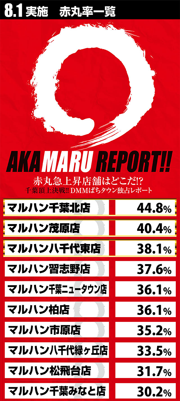8月1日、千葉県千葉市の「マルハン千葉みなと店」にて、「AKAMARU REPORT」を敢行。