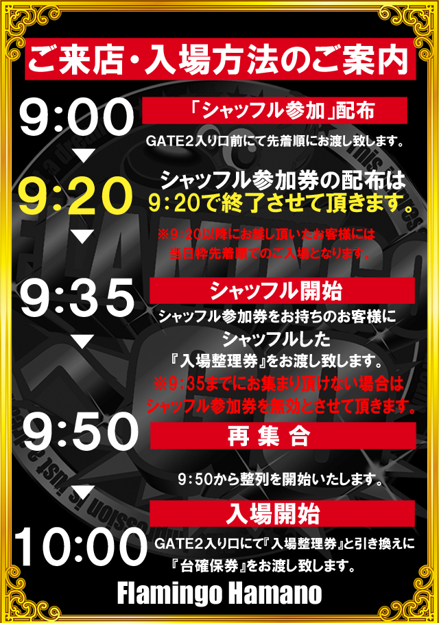 9時45分までに抽選会場にお集まり頂いたお客様を対象に入場抽選を行います。抽選後、再整列となります。 |
