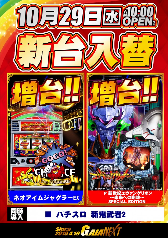 ⭐新台入替⭐朝10時開店️⚡合計8機種11台登場!!