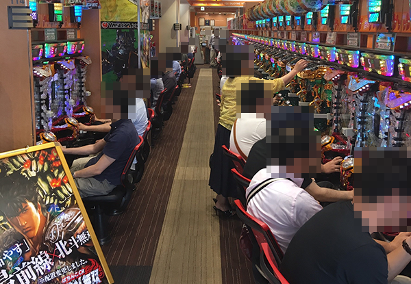 4円パチンコで高稼動を誇っていたのは「CR牙狼 魔戒ノ花」と「ぱちんこCR真・北斗無双」。機種の特徴を活かしているような姿が多く、華やかな光景もみられた。