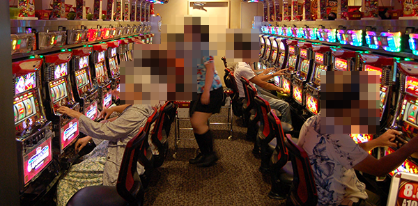 午後の20円パチスロでは、「戦国乙女2〜深淵に輝く気高き将星〜」や新機種の「デビル メイ クライ クロス」に、機種の魅力的を存分に堪能していると思われるプレイヤーを発見。にこやか表情からは、満足感を得ていることが伝わってきた。