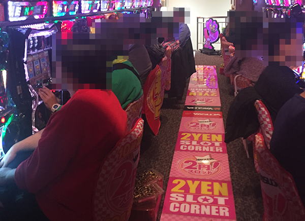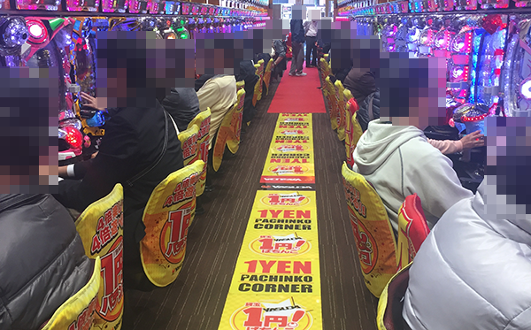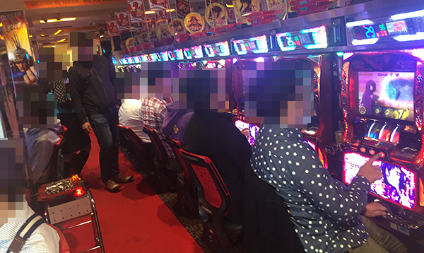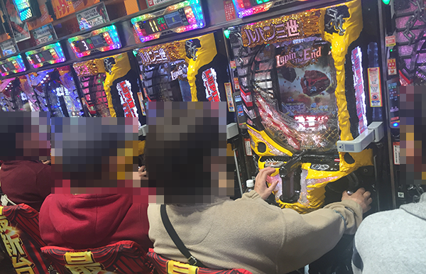 14時をまわった頃の4円パチンコでは、新台の「CRルパン三世~Lupin The End~」と「ぱちんこCR真・北斗無双」が大盛り上がり。満席となっているだけでなく、機種の性能を引き出しているようなプレイヤーが多かったことも印象的であった。