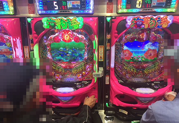 定番機種である海物語シリーズの支持も厚く、にぎやかな状況。