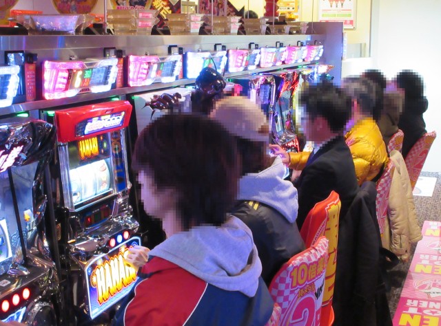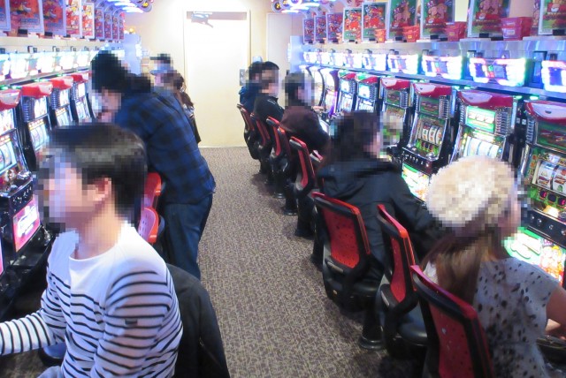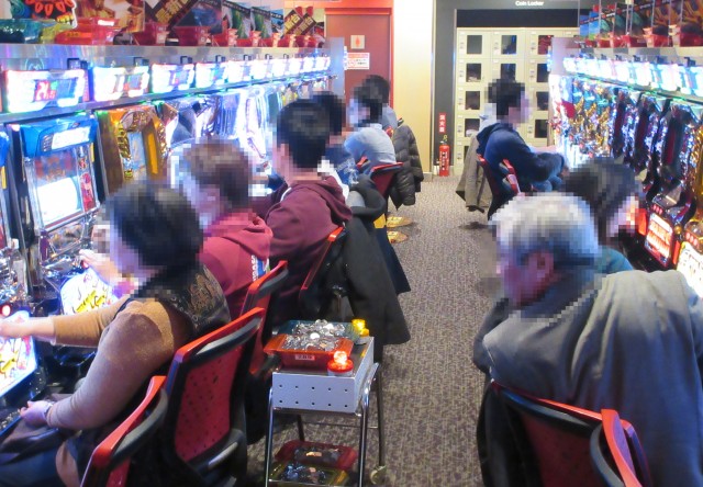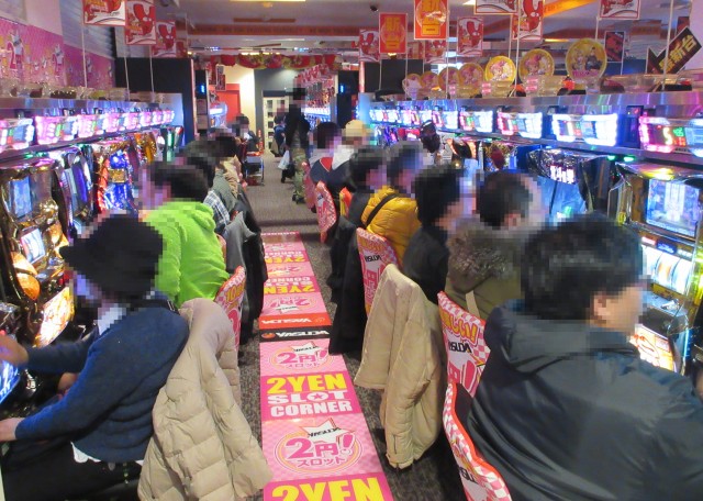 20円スロットコーナーでは、「沖ドキ!」が大人気。プレイヤーの活躍も目を引いており微笑ましい光景が広がっていた。