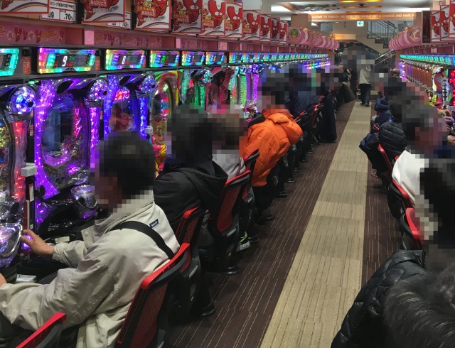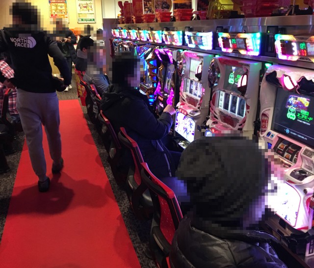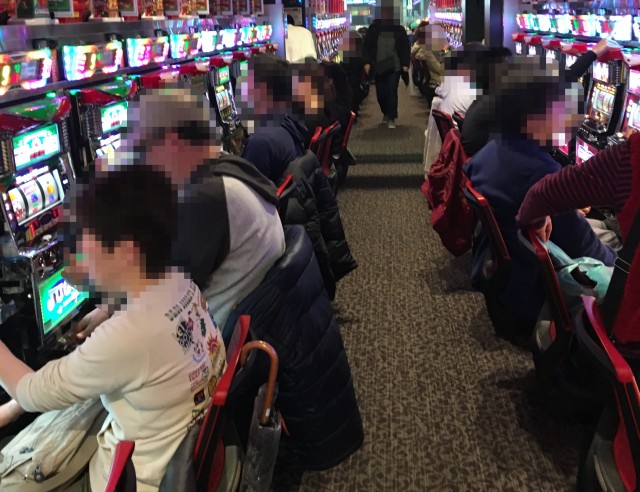 遊パチコーナーに新台で登場した「CRA着信アリFPWZ」や、「CRリング 運命の日FPWZ」といったホラー系機種も人気で、ほかにも様々な機種を揃えるシマは、笑顔で遊技を楽しむプレイヤーがあふれていた。