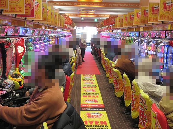 パチンココーナーには全台に各台計数機が完備しており、快適な遊技空間が整っている「やすだ稲毛駅前店」。