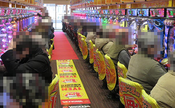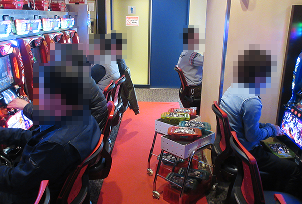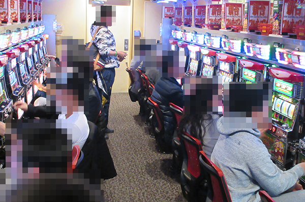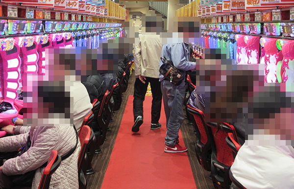 15時をまわった頃の4円パチンコでは前日に引き続き、海物語シリーズが人気。遊技を楽しむ多くのプレイヤーが笑みを浮かべており、充実した時間を過ごせていることがうかがえた。