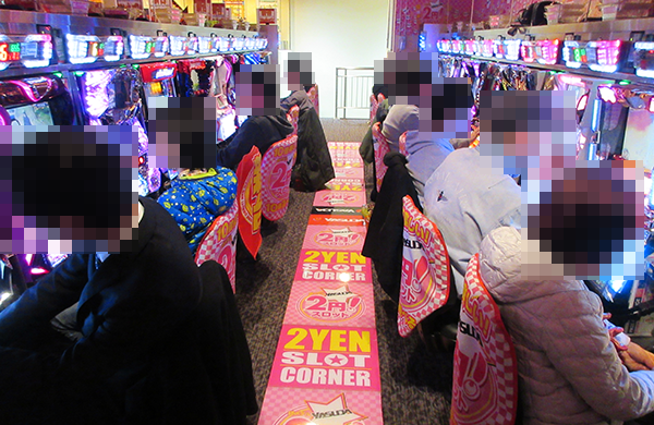 多彩な機種構成が特徴的な2円パチスロもにぎやかな状況。