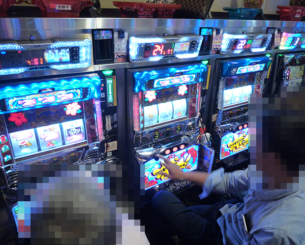 16時頃の20円パチスロでは、「押忍!番長3」に華やかな光景を目撃。笑顔の多さが満足度の高さをあらわしているように思えた。