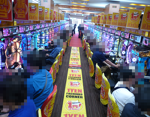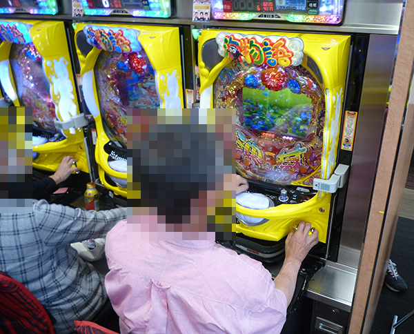 1円パチンコに広がっているムードも楽しげ。なかでも、海物語シリーズに笑顔が多く、プレイヤーたちはじっくりと遊技の醍醐味を味わえているようであった。