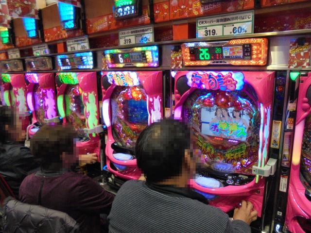 悪天候をもろともせず、店内はたくさんのユーザーで大賑わい。新台CRヱヴァンゲリヲン 2018年モデルは話題の新台だけあって、空き台はなかなか出ない状況。その他にも新台を中心に甘デジコーナー、1円パチンココーナーでもしっかりと大当り回数がついているのを確認できた。