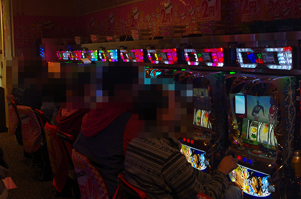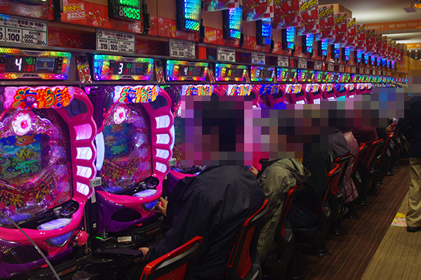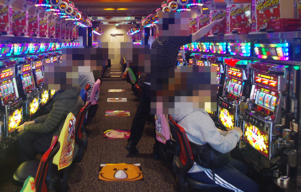 15時を過ぎた頃の20円パチスロをみると、「押忍!番長3」や「バジリスク~甲賀忍法帖~絆」などの支持が厚い。なかには、うれしそうに笑みを浮かべるといったプレイヤーも確認している。