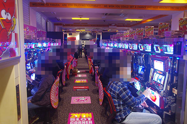 4円パチンコでは、「CR牙狼GOLDSTORM翔」や新台の「CRヱヴァンゲリヲン 2018年モデル」などが活況。機種の醍醐味を堪能しているといったプレイヤーが多く、シマ全体からにぎやかな雰囲気も感じられた。