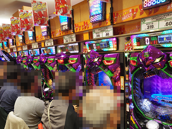 4円パチンコにおいては、前日に引き続き、「CR牙狼GOLDSTORM翔」や「CRヱヴァンゲリヲン 2018年モデル」などがにぎわっていた。プレイヤーたちは、しっかりと遊技を満喫できていたように思う。