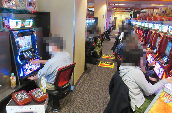 15時頃の20円パチスロにおいて、もっとも活気づいていたのが「バジリスク~甲賀忍法帖~絆」。機種の性能を発揮できているような姿も目立っており、華やかなムードが感じられた。
