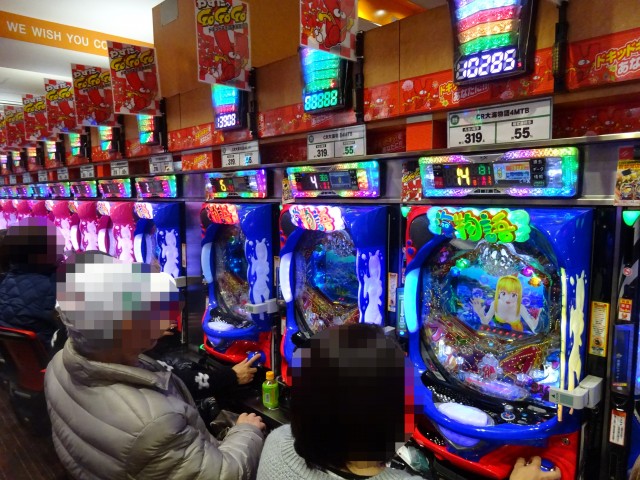 人気の『CRスーパー海物語IN沖縄4』は満台で、見応え十分だ。