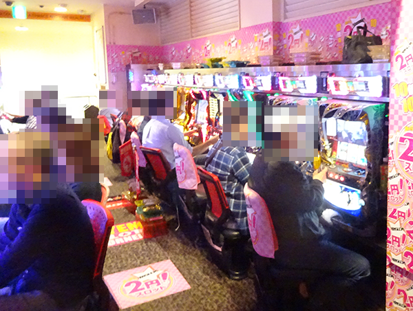 満足そうなプレイヤーは「押忍!番長3」などをはじめ、2円パチスロでも目にしている。