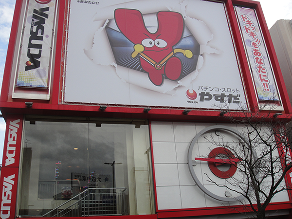 大きな時計が掲げられた特徴的な外観のホールには、初日から多くのプレイヤーが来店。
