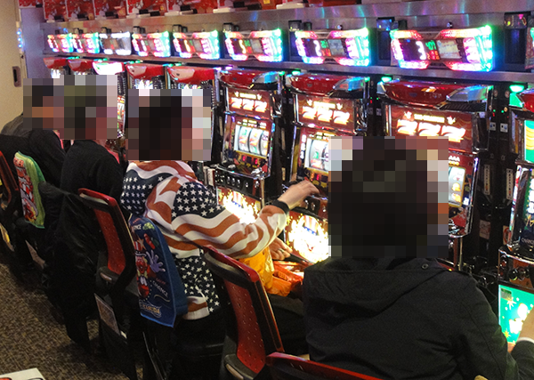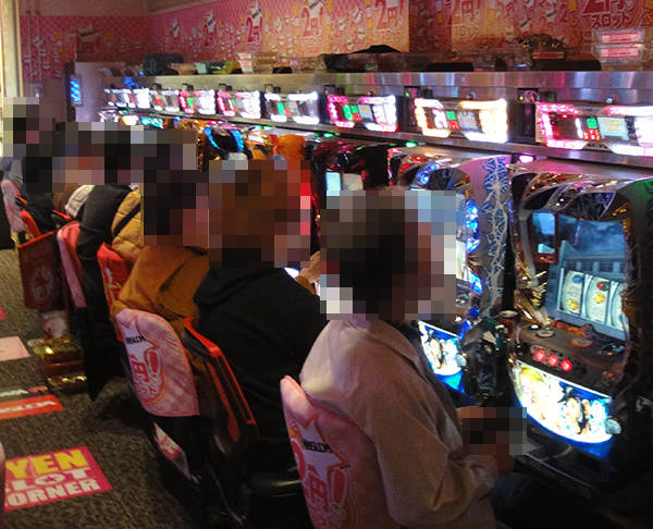 階段を登り、すぐに目に飛びこんできたパチスロコーナー全体をとおして、活気のある光景を確認した。