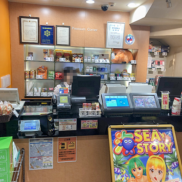 カウンター周辺にはお菓子やインスタント食品など多彩なアイテムが並んでおり、プレイヤーたちの目を引いていた。