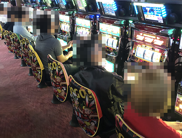 確認時は設置されている15台中10台以上が稼働しており、シマ内はにぎわいに包まれていた。にこやかな表情でレバーを叩いているプレイヤーが多かったことも、明るいムードが感じられた理由のひとつだろう。